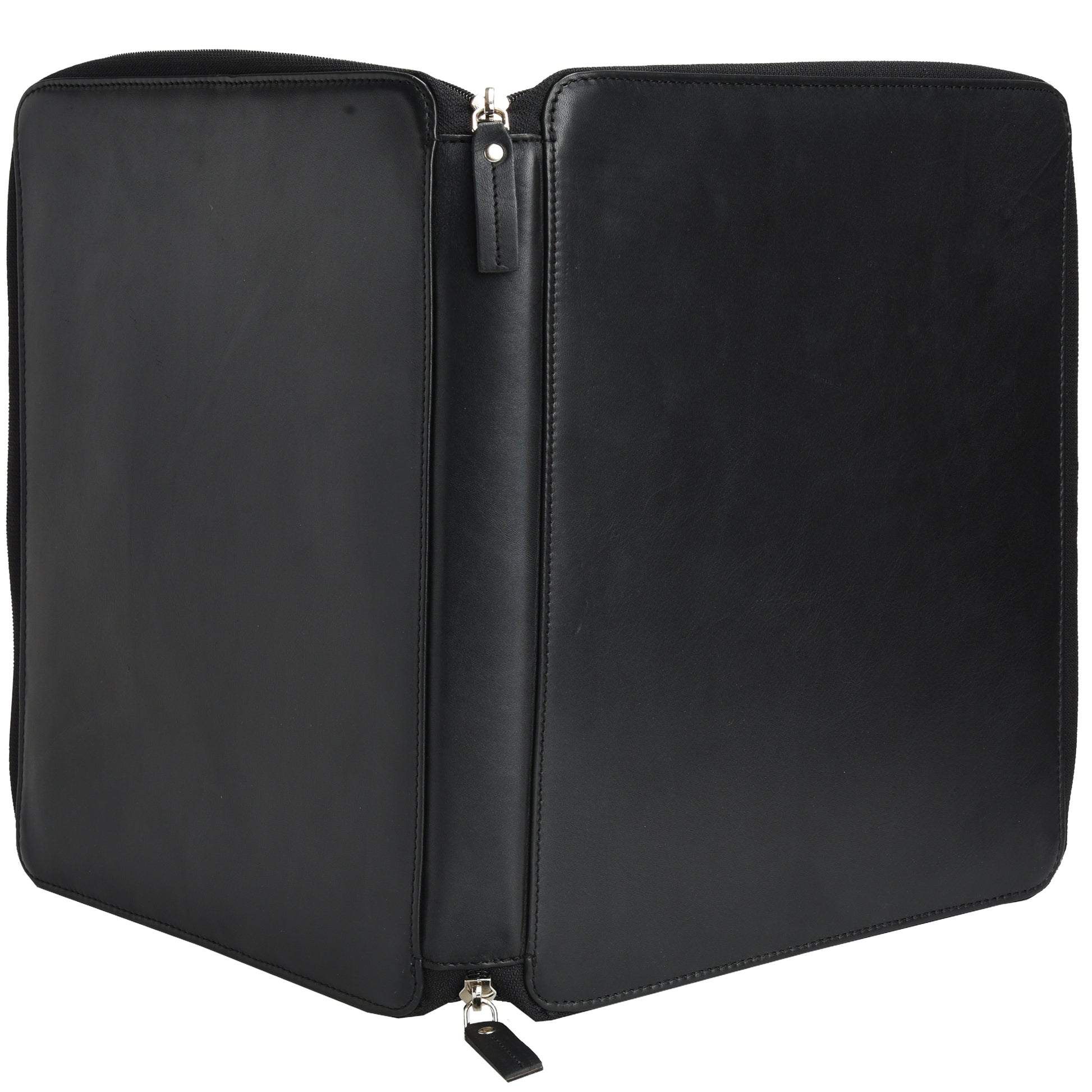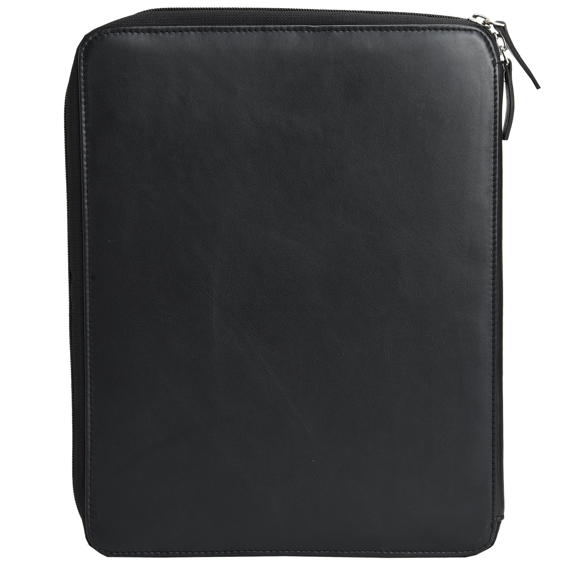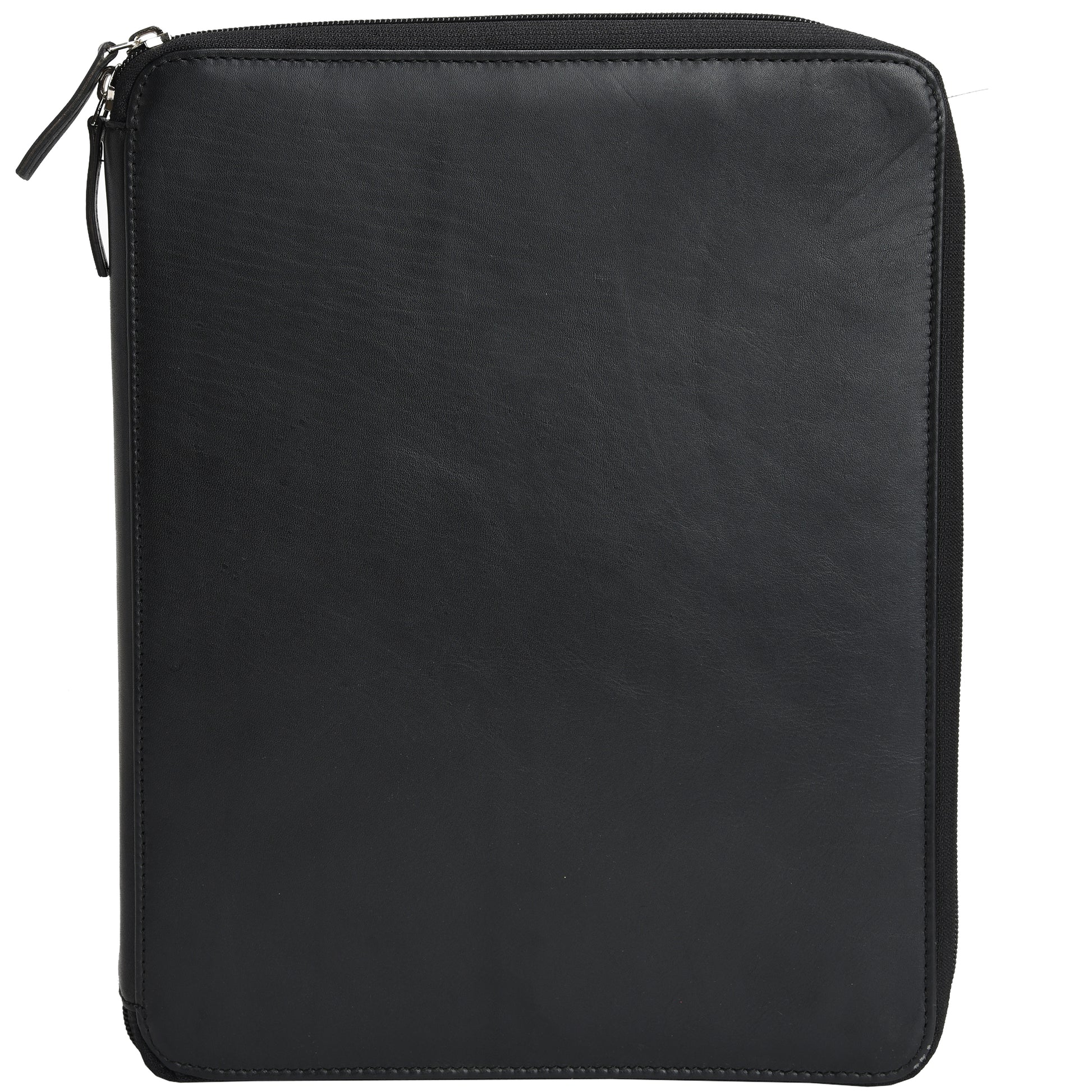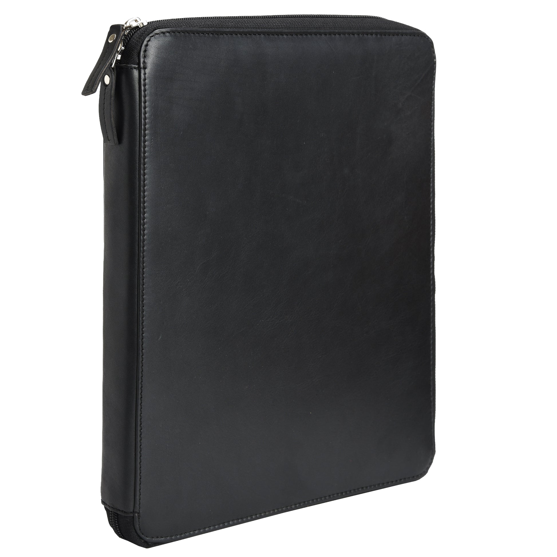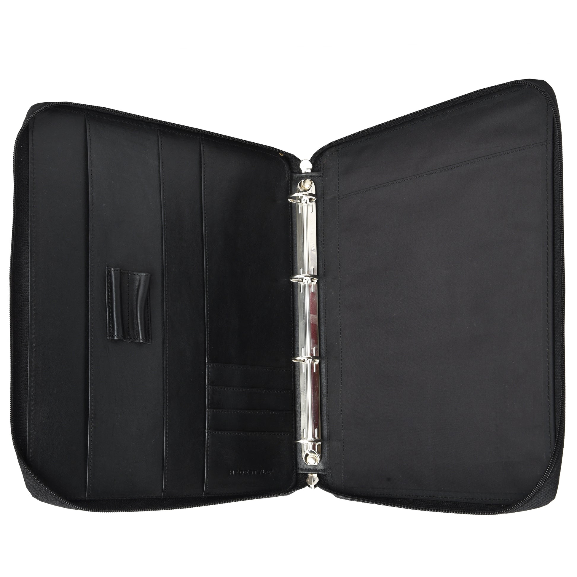 This HYDESTYLE ® zipped organizer is ideal for daily use. It is made of genuine leather. This A4 organizer comes in classic black colour. It is a soft yet strong and hard wearing case. The product is handcrafted and made from the finest grained leather that has a rich feel and a wonderful new leather aroma. It has space for 4 debit/credit card pockets, 3 large slip pockets and 2 pen holders. It also features 4 ring binder that can hold A4 sheets.