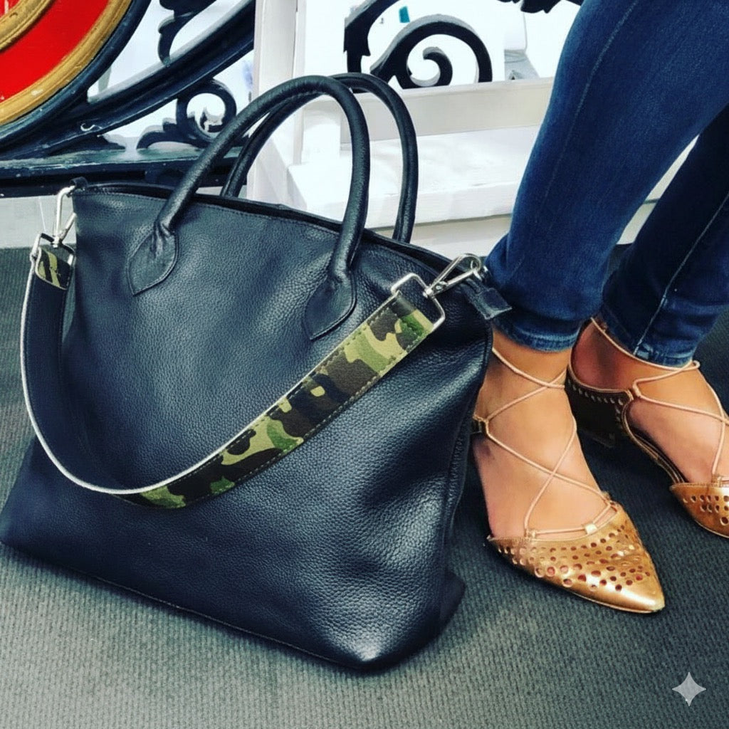 Como print Pony-Skin Shoulder Bag Strap is an easy update to your bag. Embrace the animal print trend into your new-season look in a subtle and stylish way. The strap has a black leather reverse and contrast camoflauge top-side.