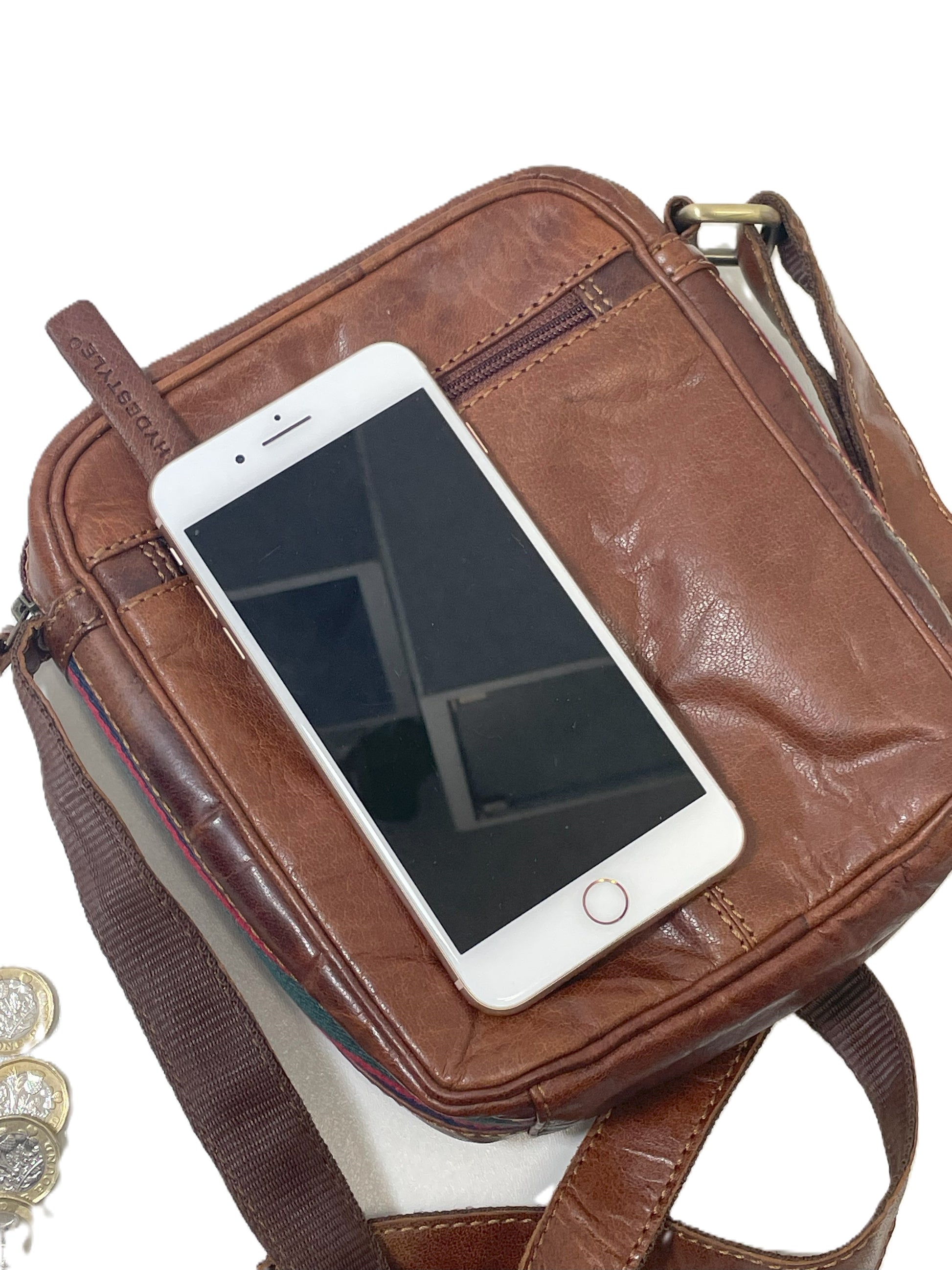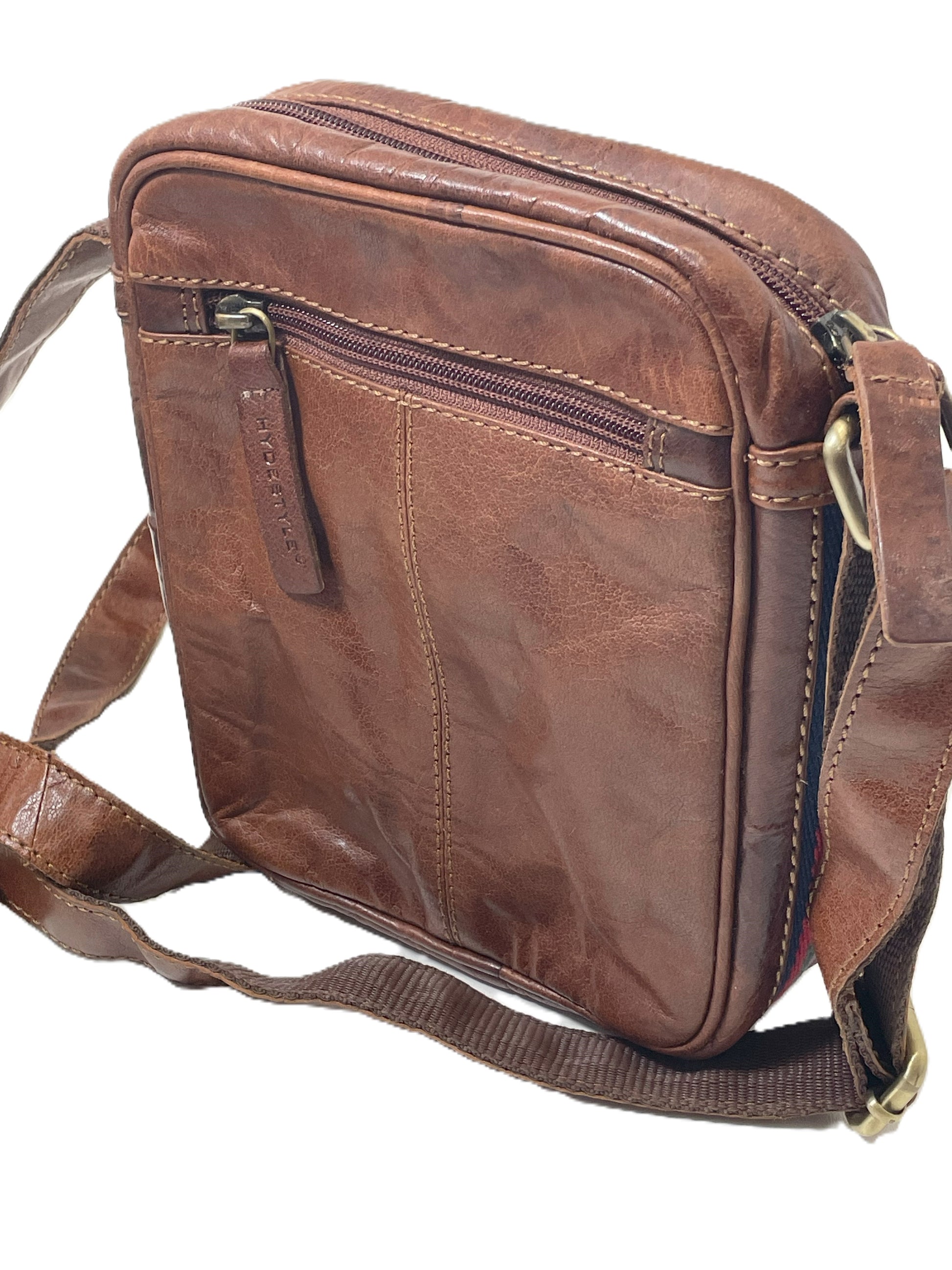 Classic Walnut Brown Leather Small Messenger Travel Bag with Webbing Details for Him Her