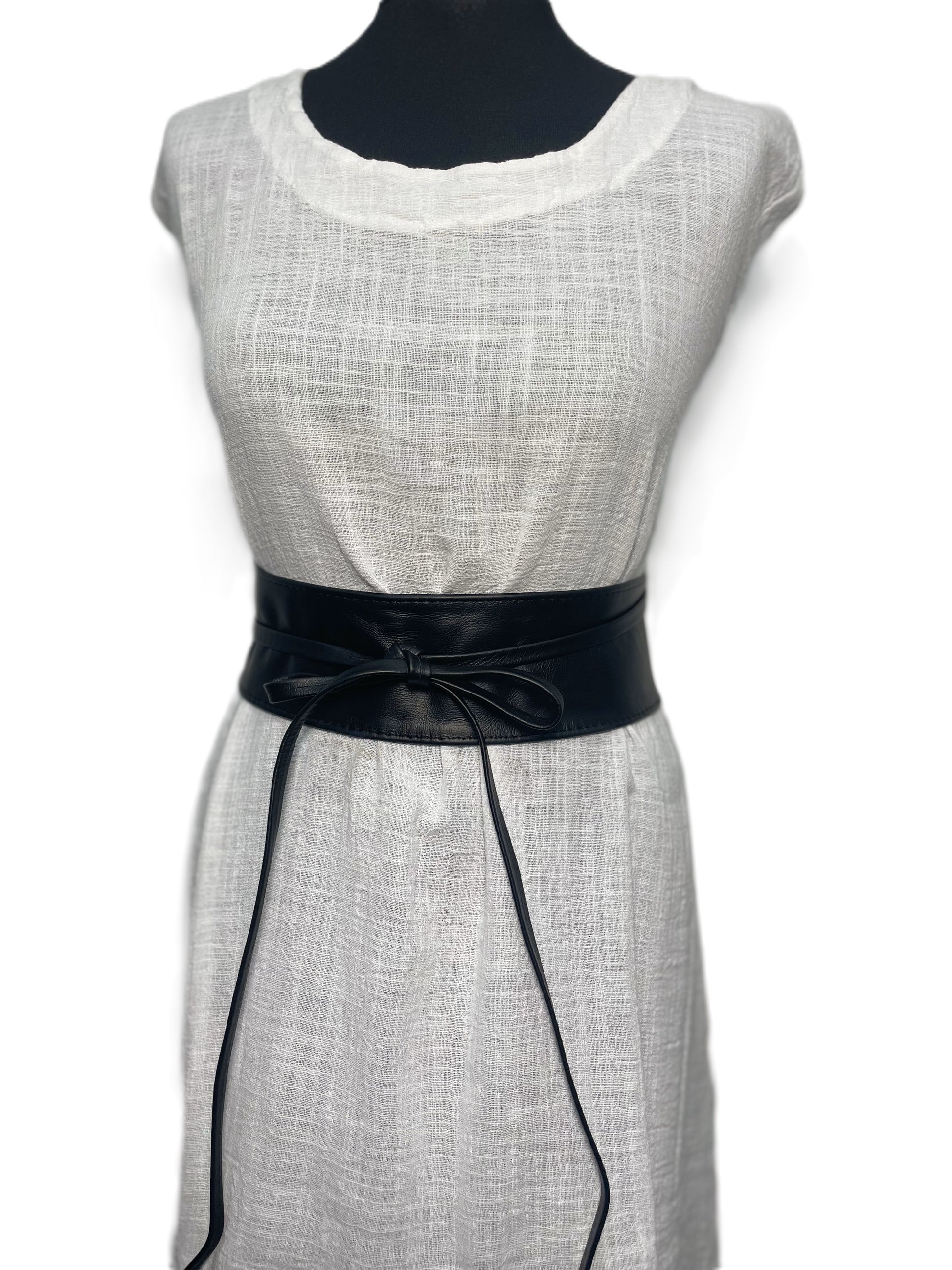 Black Obi belt soft genuine leather wrap belt | Wide waist belt in genuine leather | Genunine leather wrap around boho dress belt