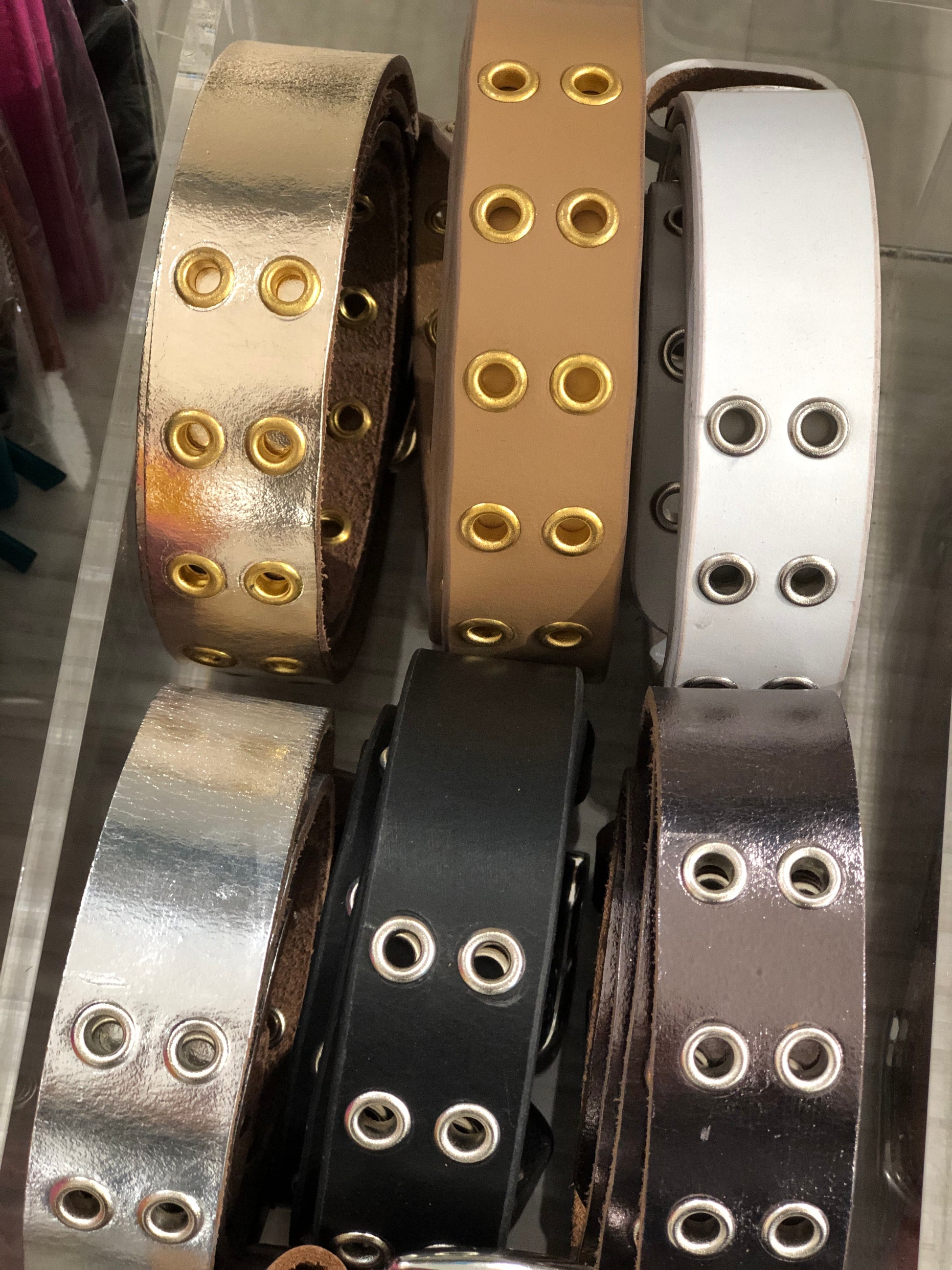 Eyelet Metallic Pewter Womens' Leather Belt (metallic grey)