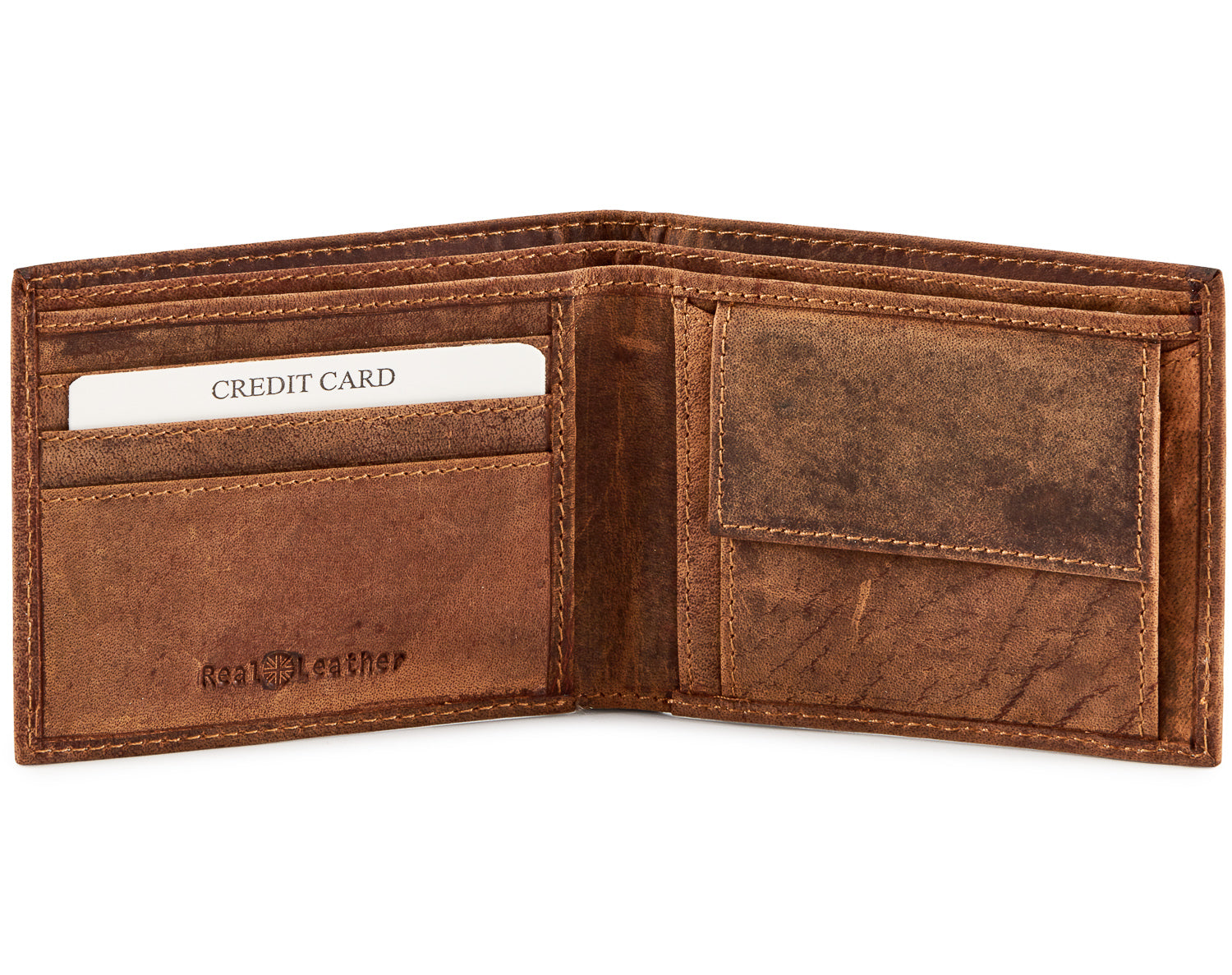 This HYDESTYLE® genuine leather wallet has a vintage pre-worn distressed scratch effect finish in a handsome hunter brown colour. The wallet is made from superb quality leather with a vintage finish.