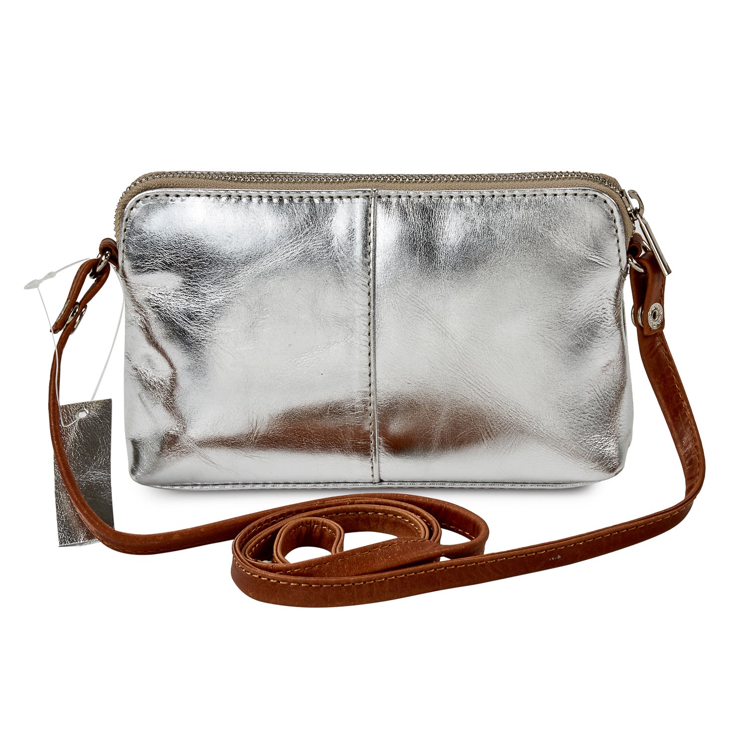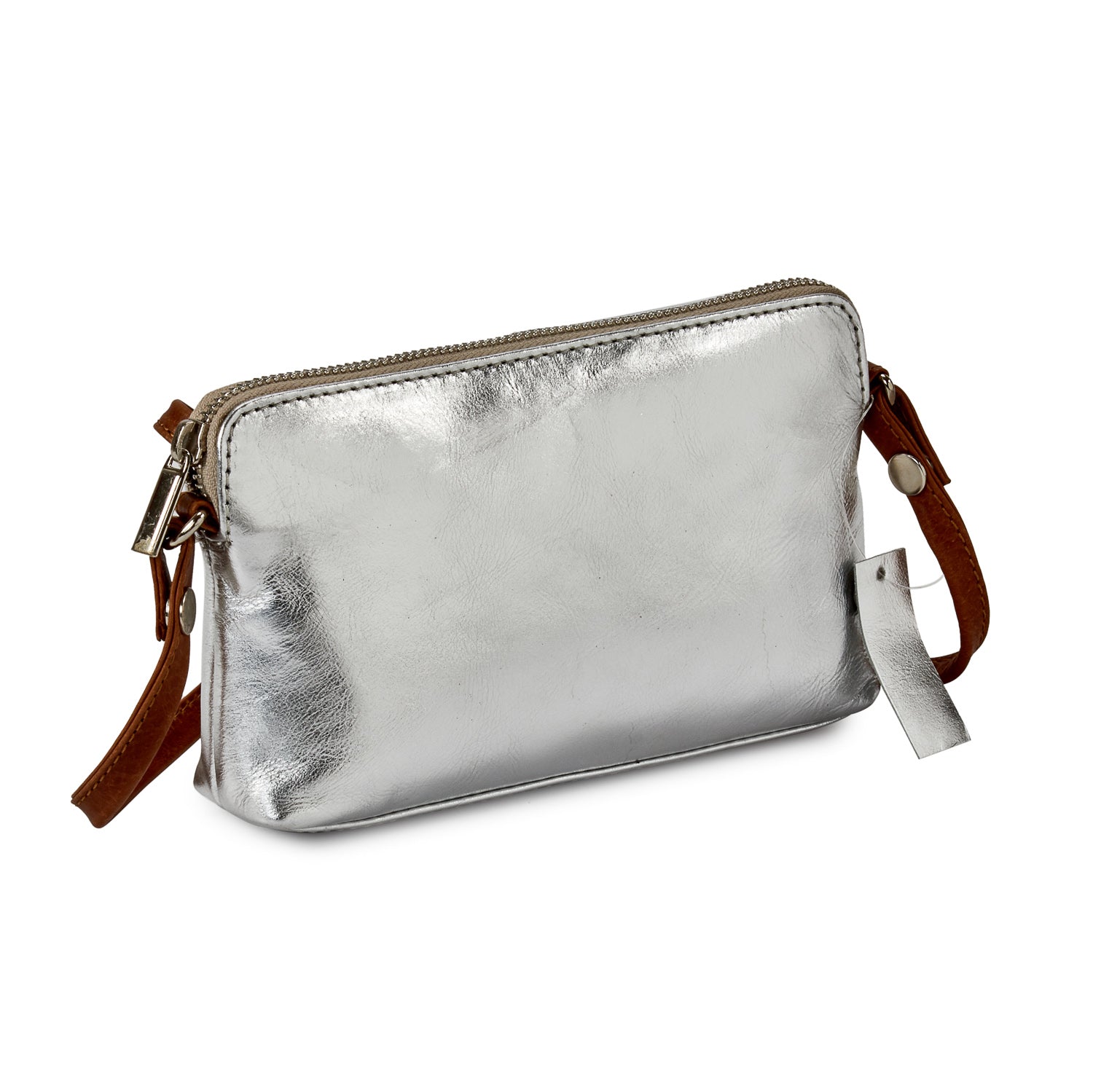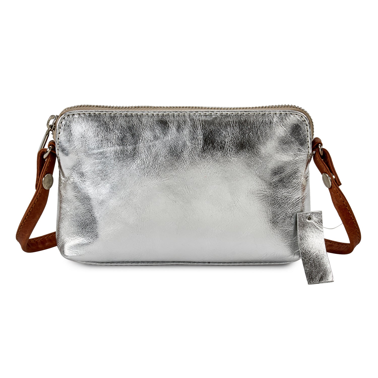 Adorned with subtly stitched panels, this shoulder bag has a detachable shoulder strap. This small metallic leather shoulder bag is all you need to dress up your daytime adventures or your fancy night out.
