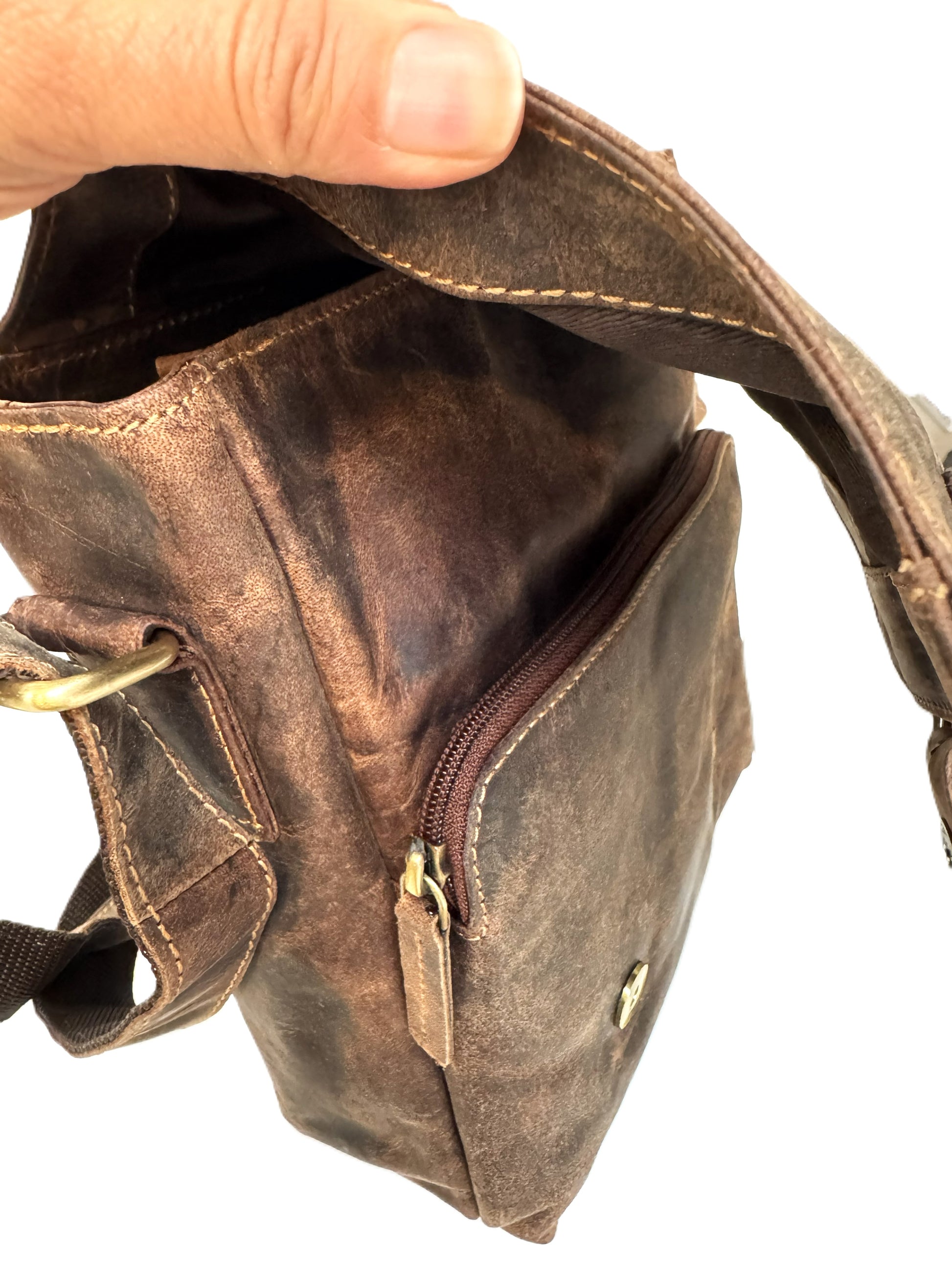 Antique brass hardware enhances its vintage, rugged charm, complementing the deep tones and texture of the oiled leather. The more you use it, the richer and more characterful it becomes.