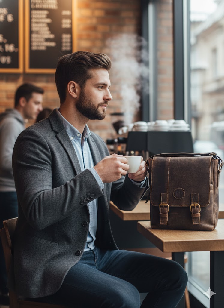 This medium-sized men’s crossbody bag offers clever organization for business, travel, or casual use.