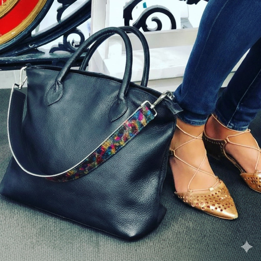 Matallic Colour Splash Pony-Skin Shoulder Bag Strap is an easy update to your bag. Embrace the animal print trend into your new-season look in a subtle and stylish way. The strap has a black leather reverse and contrast metallic coloured top-side.
