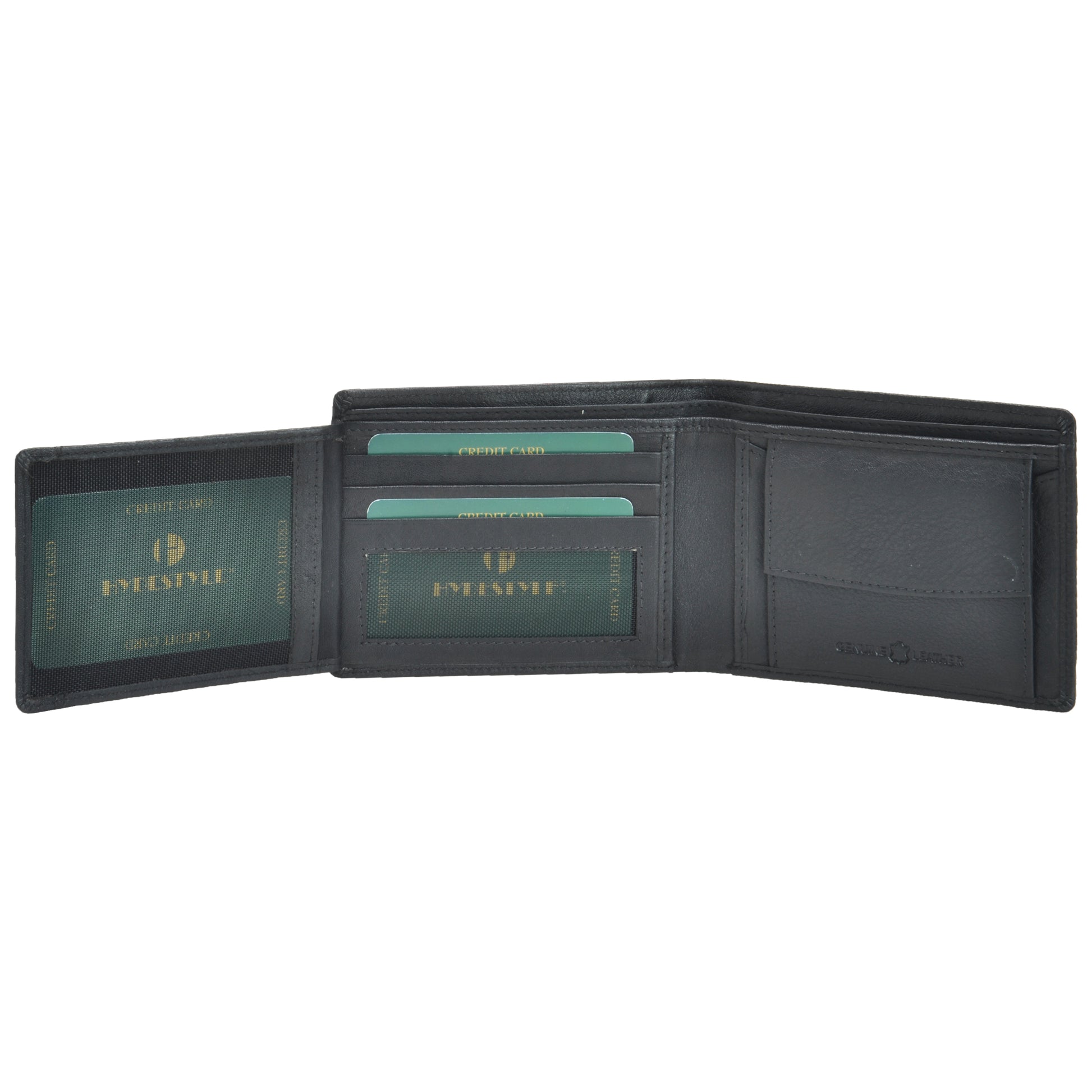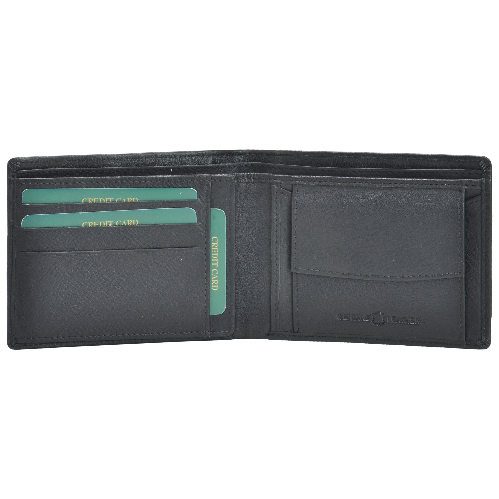 • Men's compact leather wallet in black colour with 2 note section, 6 credit card slots, 1 photo pocket, 3 slip pockets for receipts, 1 coin pocket.