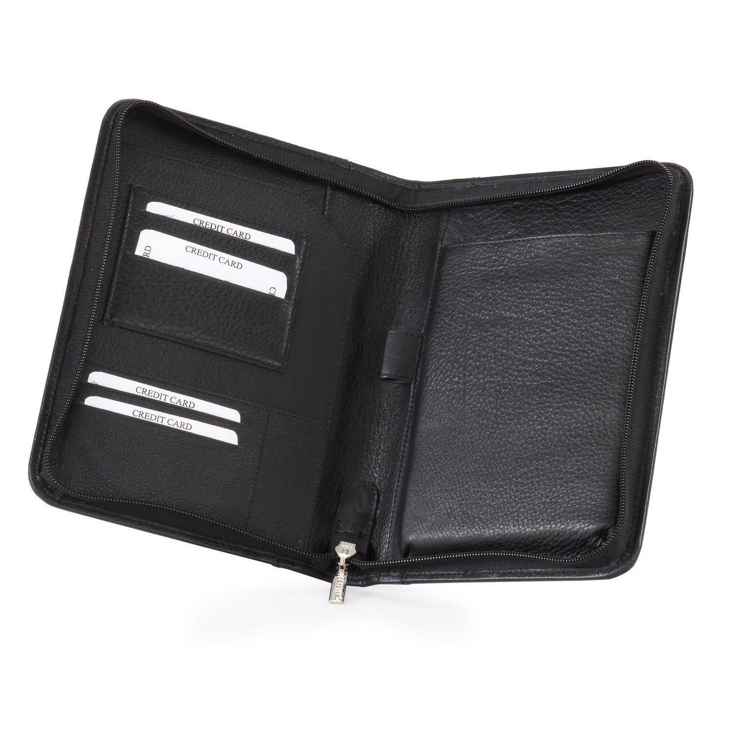 - This HYDESTYLE ® zipped organizer is ideal for daily use. It is made of genuine leather. This A5 organizer comes in a range of colours, classic black, smart brown and in sexy red colour. It is a soft yet strong and hard wearing case. The product is handcrafted and made from the finest grained leather that has rich feel and a wonderful new leather aroma. The case is available in a variety of colour to suit your taste. Has debit / credit card pockets and penholder.