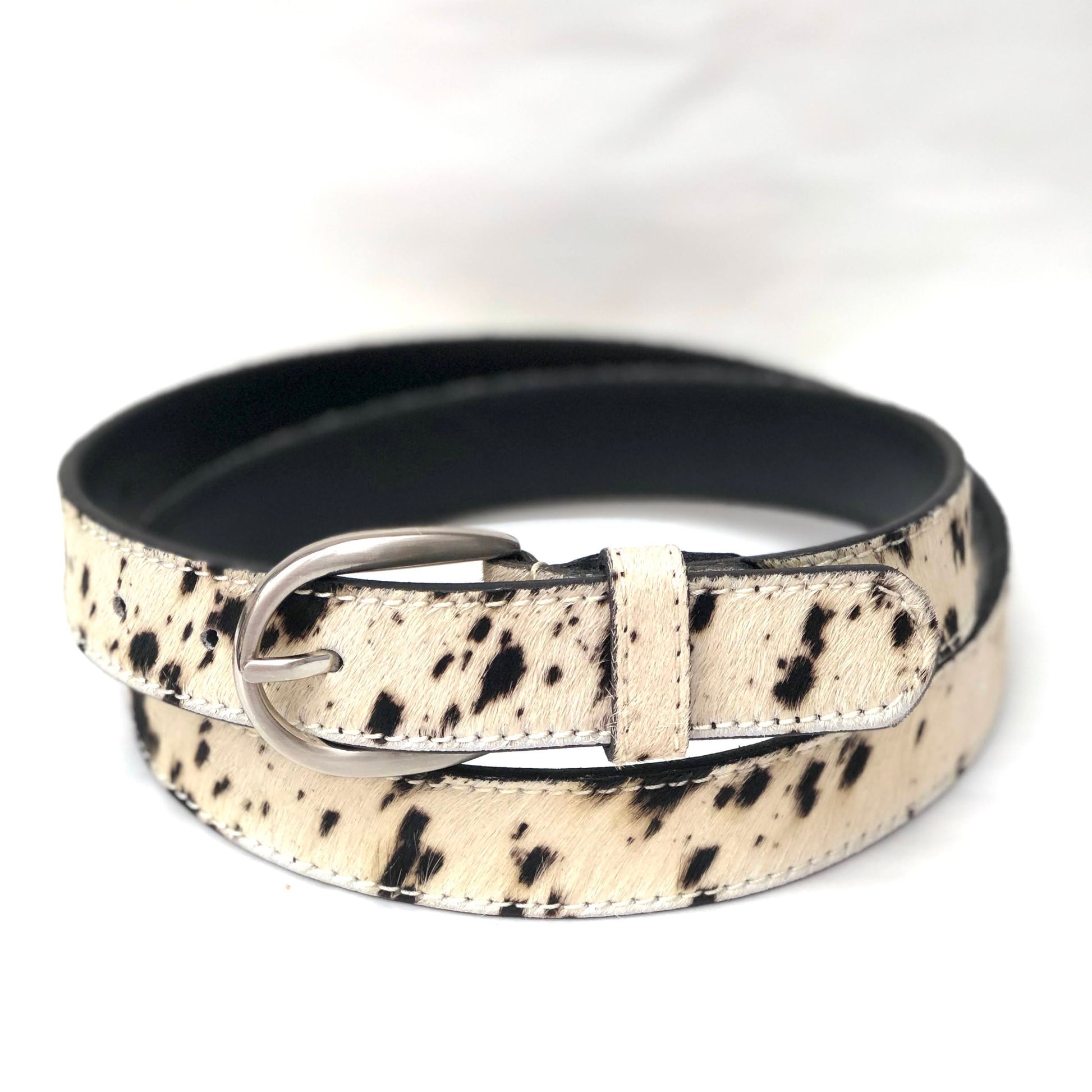 Spotty Cow Hair on Hide Leather Pony Hair Women's Belt