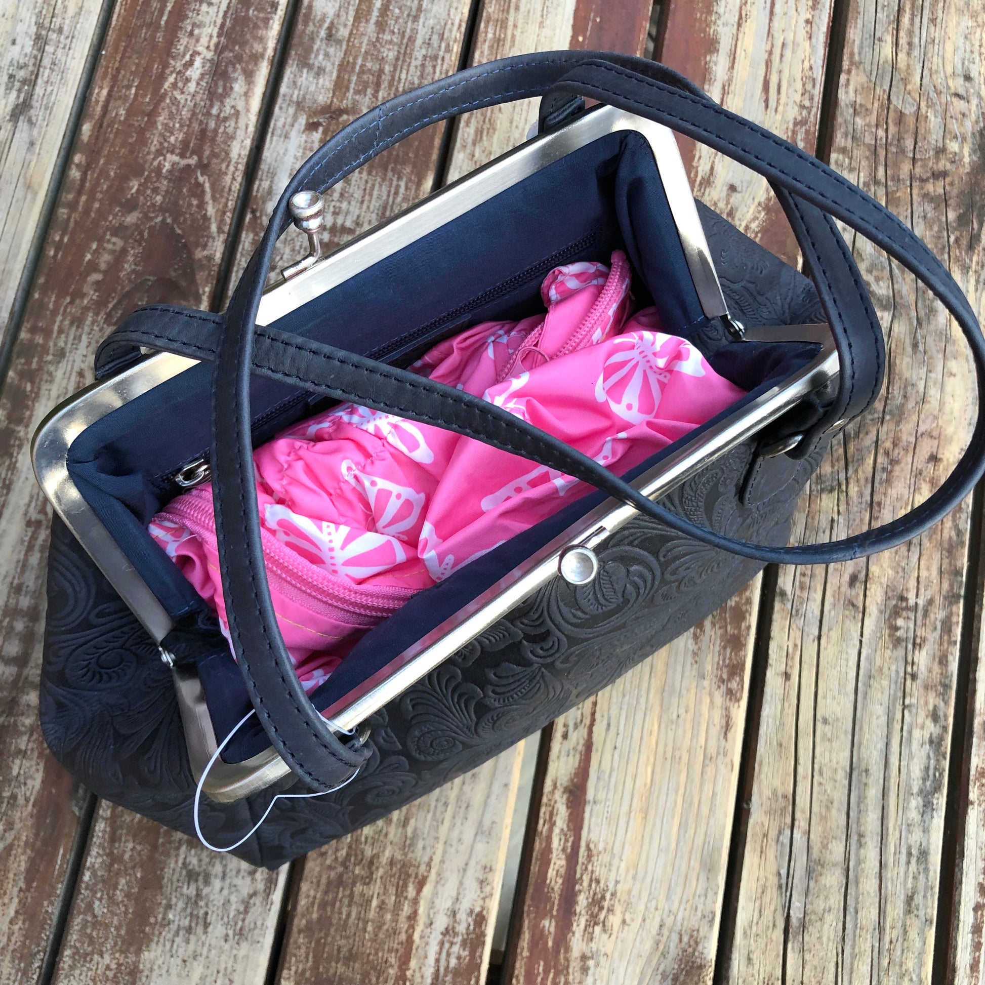 Vintage Style Embossed Leather Frame Bag Navy LB101